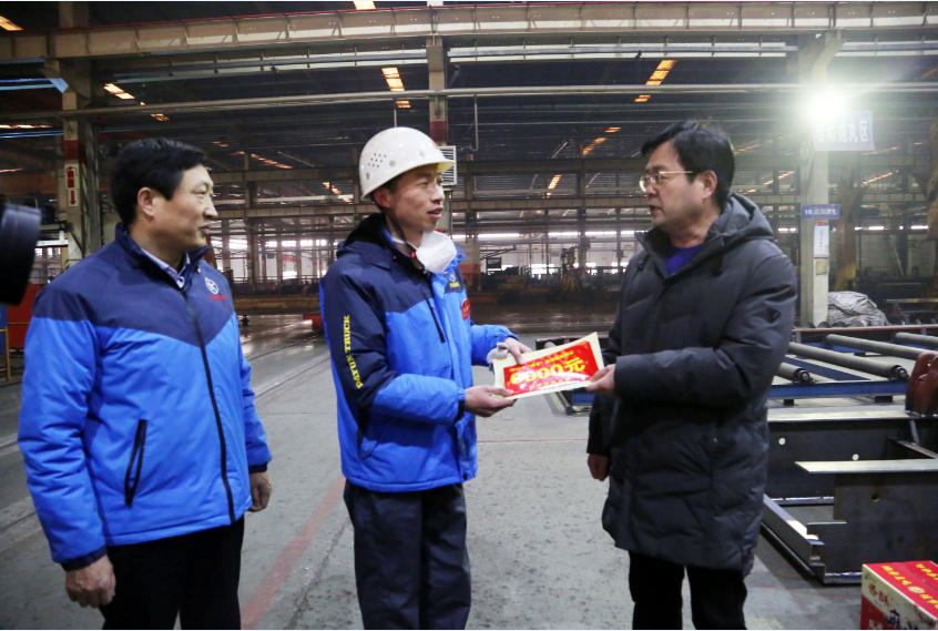 1月28日,运城市总工会主席杜自立一行来到AG旗舰厅汽车运城生产基地,对公司困难职工进行慰问,AG旗舰厅汽车工会主席孙兆明、副主席马鲁堂、周国军等陪同慰问。
